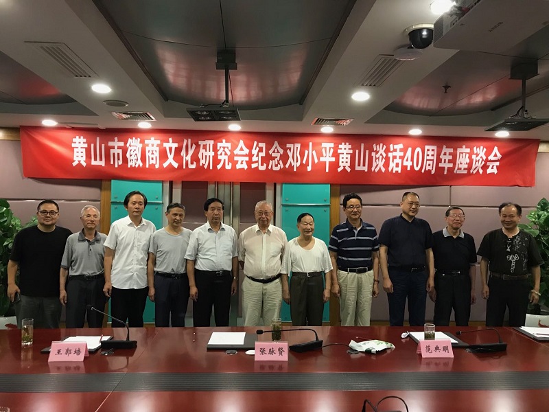 2019年7月15日下午2:30黄山五福置业有限公司在黄山国际大酒店会议中心一楼会议室召开纪念邓小平黄山谈话40周年座谈会,会议由黄山市五届人大常委会秘书长王郭培主持,五福置业董事长孙永林,徽学专家张脉贤、翟屯建、蒋劲华、张建平、汪柏树、方立山、陈安生、吴兆民等参加了会议。