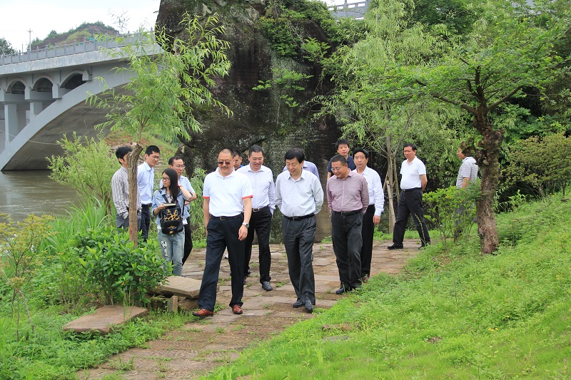孙永林董事长首先对潘万金一行的莅临表示热忱欢迎,并陪同参观了徽商论坛国宾酒店,徽商论坛会议中心、世界徽商名人堂、会馆区、观音山景区、丹桂园等建设现场,介绍了世界徽商论坛永久会址现阶段工程进展情况以及下一步战略发展规划目标。在听完介绍和观看宣传片及实地考察后,潘万金一行对世界徽商论坛永久会址项目建设给予了高度评价和充分肯定,对近年来所取得的成绩表示赞赏,他指出,世界徽商论坛永久会址项目地风光景色十分优美,徽文化底蕴特别浓厚,世界徽商论坛永久会址依托天然的生态资源和旅游优势,为全球各地徽商、华商搭建一个学习、交流的世界级平台,是一件很有意义的大好事。并表示愿与世界徽商论坛永久会址进行战略合作,为下一步项目建设与发展提供合作及支持,为世界徽商实现徽商中国梦作出新的贡献!