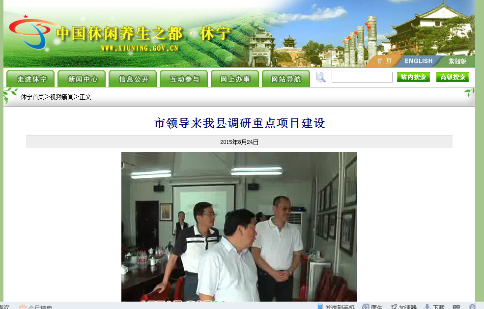 休宁县政府网报道-周市长视察世界徽商论坛永久会址项目