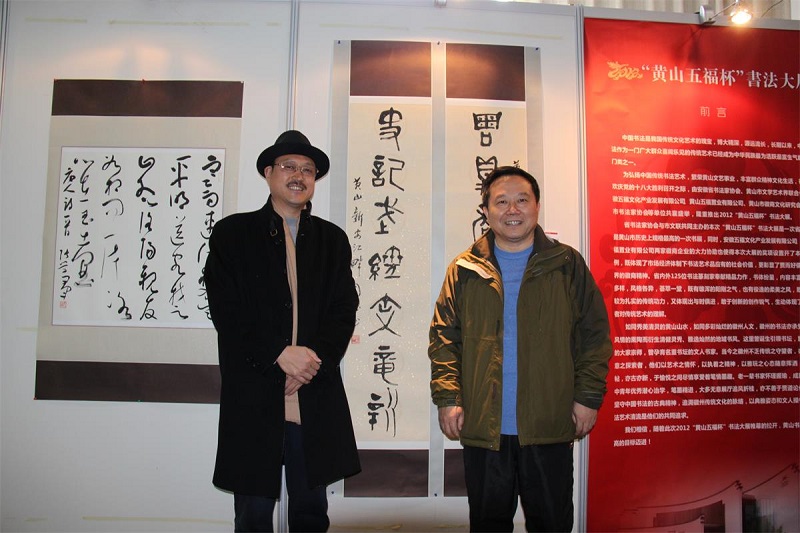 为庆祝“十八大”的胜利召开 ,由安徽省书法家协会、黄山市文学艺术界联合会主办,安徽五福文化产业发展有限公司、 黄山五福置业有限公司协办,黄山市徽商文化研究会、黄山市书法家协会承办的安徽省“黄山五福杯”书法大展在黄山市城市展示馆开展,展期5天。18日上午,黄山市委副书记、市人民政府市长宋国权在黄山市文联主席倪国华的陪同下参观书法大展,黄山市徽商文化研究会会长、黄山五福公司董事长孙永林陪同参观。