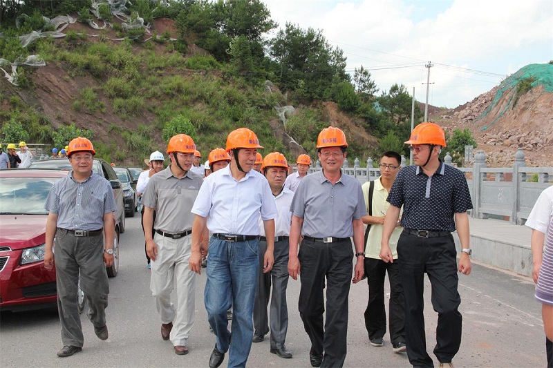 2013年6月17日下午,黄山市新一届政协主席范典明先生,顶烈日、冒酷暑,莅临世界徽商论坛永久会址项目施工现场视察指导。世界徽商论坛永久会址高级顾问、原安徽省旅游局长张脉贤和黄山市五届人大常委会秘书长王郭培、休宁县政协主席王运选、休宁县副县长汪岩、商山镇党委书记曹国强以及黄山五福公司董事长孙永林、常务副总经理汪险峰等陪同视察。